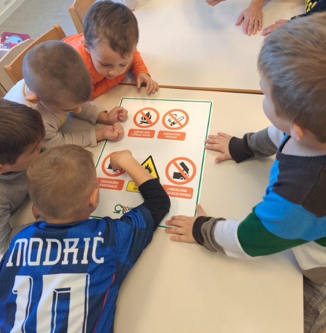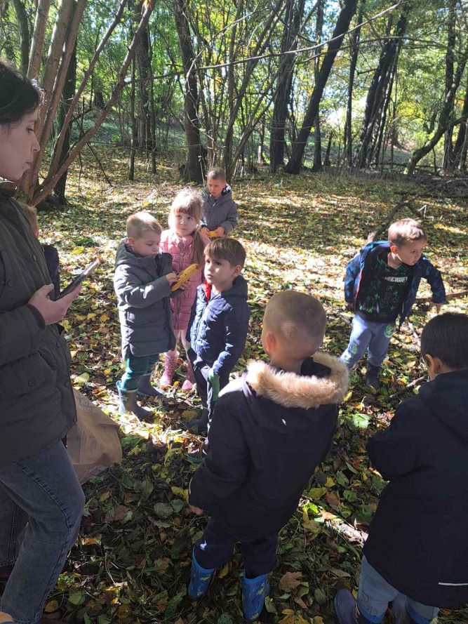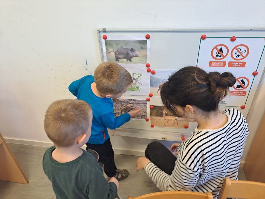 Djeca skupine “Kockice” u vrtiću su prethodne dane provela u šumskom ozračju. Najprije nas je posjetio lovac Vlado Baklaić, koji je djeci približio svoj poziv i važnost brige o životinjama i šumi. Zajedno s lovcem i odgajateljicama, djeca su krenula u šetnju do šume, gdje su promatrala prirodu, istraživala različite vrste stabala i biljaka te razgovarala o tome kako prepoznati pojedine vrste prema obliku lišća, kore i krošnje. Djeca su se posebno obradovala što će nahraniti šumske životinje – izrunila su kukuruz kako bi naši šumski prijatelji bili siti.